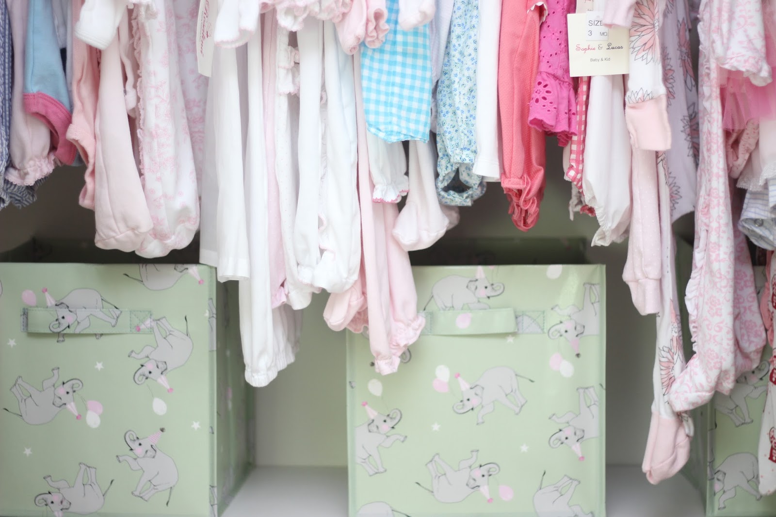 Beautiful! I love a little soft pink nursery! Also, obsessed with those little elephant containers in the closet! Adorable!
