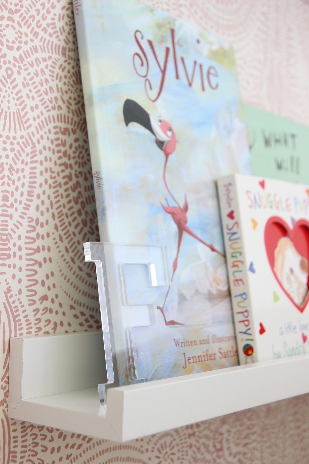 Such a sweet nursery. Love that wallpaper, and how you added an extra pop of it behind the books. Super cute!